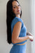 Embrace summer vibes in the "Fresh Glance Top!" This knit sweater top is an easy and elevated way to enhance your wardrobe! It features a true blue color, ribbed v-neckline, and sleeveless sides. Pair with the matching skirt for an effortless set for the beach or brunch!