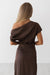 Elevate your style with the new "Hollis Dress!" This brown number is the perfect way to make a statement this season! Boasting an off the shoulder neckline, ruching on the sides, and a flattering satin fabric, this dress is perfect for wearing to date night! Style with heels to complete the look!