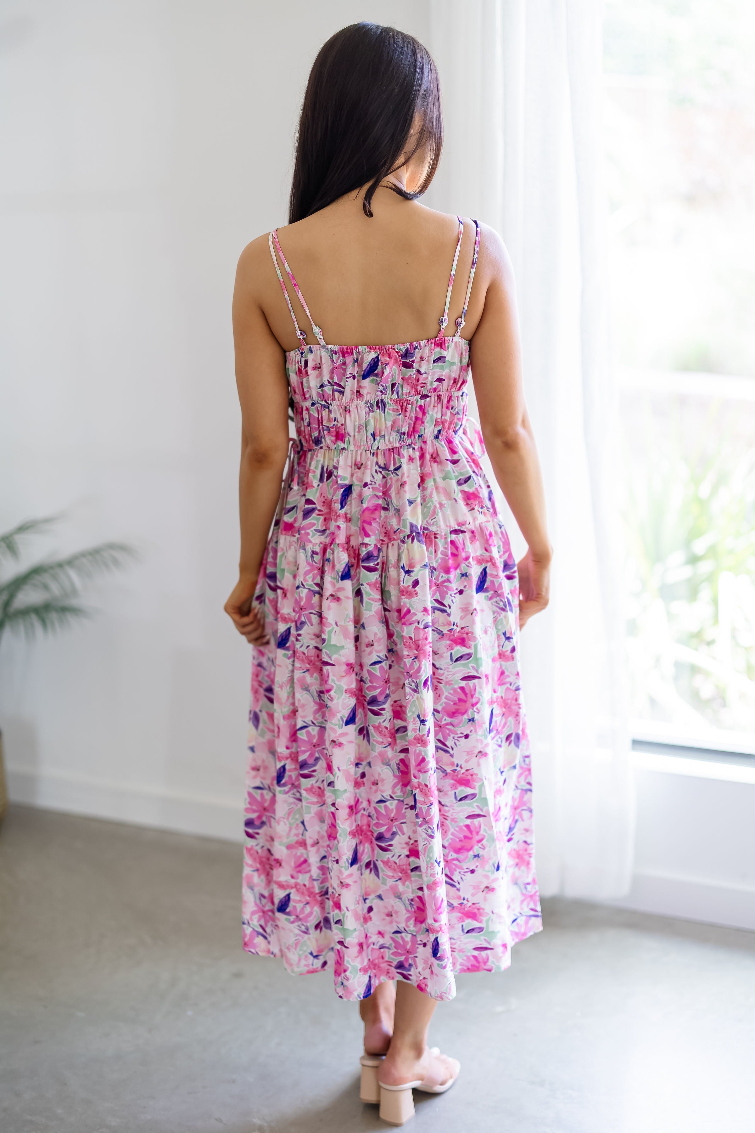 Feel your best in the "Jennifer Dress!" Perfect for summer, the pink and sage floral print offers a vibrant pop of color to your wardrobe! Complete with double thin straps, a flattering ruched waistline, and charming midi length. This dress is an easy option for wearing on summer vacation with heels or sandals!