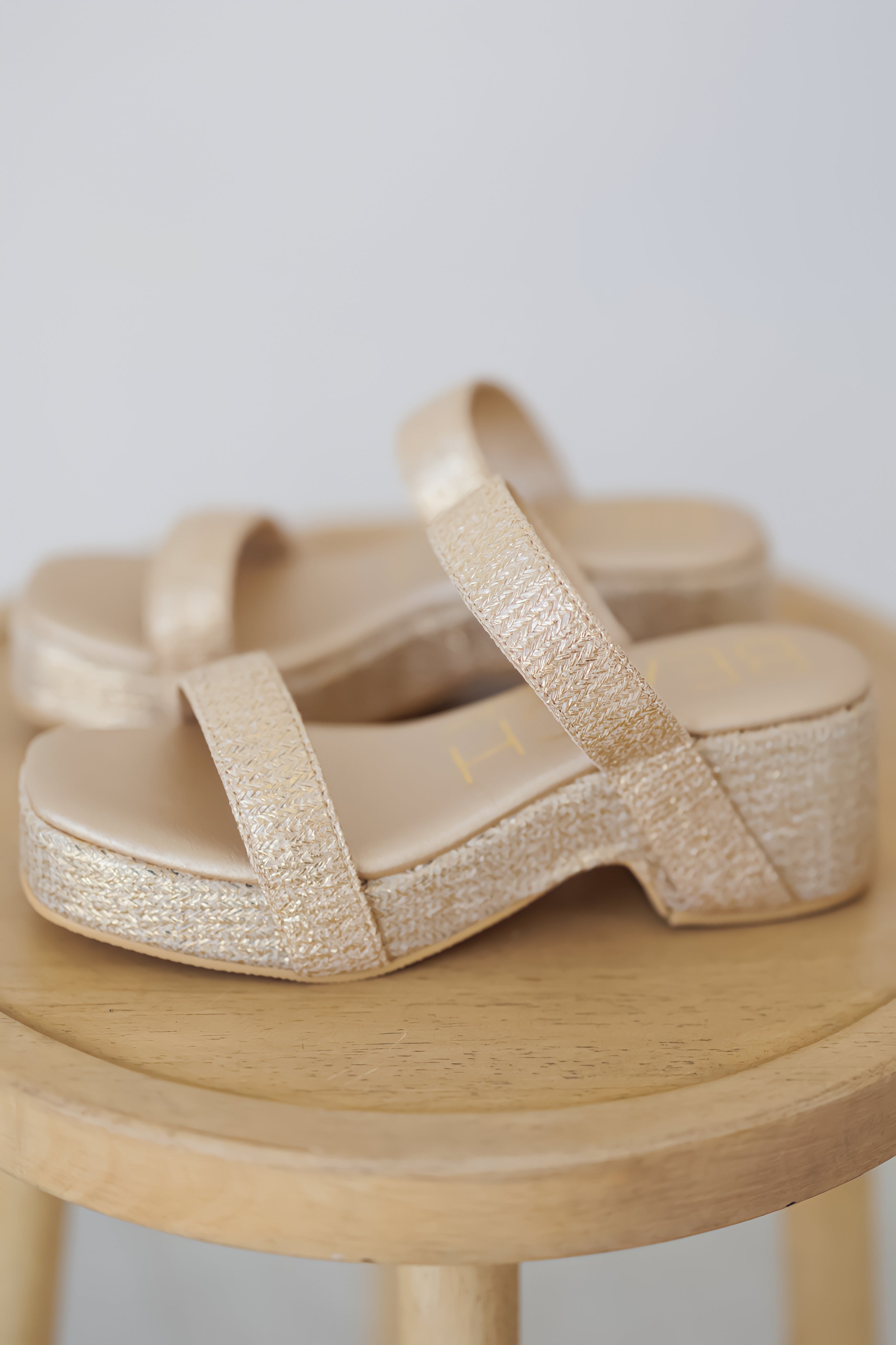 Effortless and elevated, these gold sandals are a vacation staple! The "Sable Sandals" offer so many charming details that pair perfectly with any sundress or maxi dress! They feature a high platform base with double straps over the foot. The woven gold texture brings the details in these shoes to the next level!