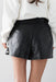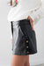 These sleek black shorts feature a leather-like finish elevated by distinctive side fashion buttons that add an unexpected design element. Chic and flirty, they're the perfect piece for anyone ready to make a confident statement.