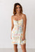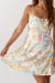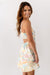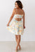 Meet your vacation match with the "Porter Mini Dress!" The perfect addition to your suitcase, this dress offers an elevated tropical print with stunning details. The neckline features a lace up bust bust with thin straps, while the back has an elastic band and cutout design. Pair with any heels or sandals for a completed look!